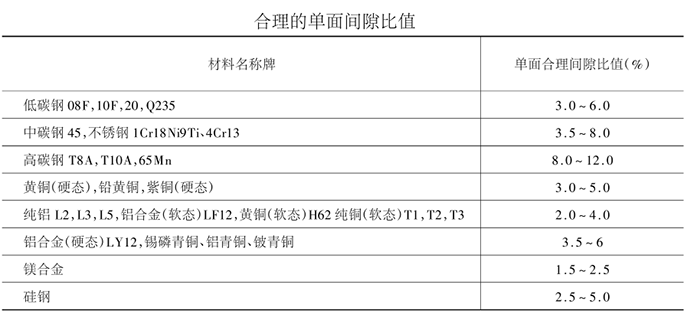 表中的数据是单面间隙与材料厚度的比值。