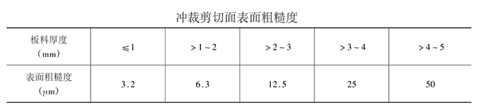 c、冲裁剪切面表面粗糙度,见下表。