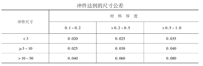 根据不同厚度的材料及零件尺寸大小,可达到的尺寸精度见下表。